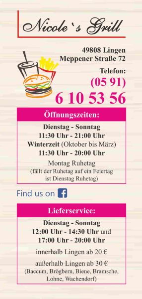Sonntag: 12:00 - 14:30 Uhr und 20:00 - 14:30 Uhr