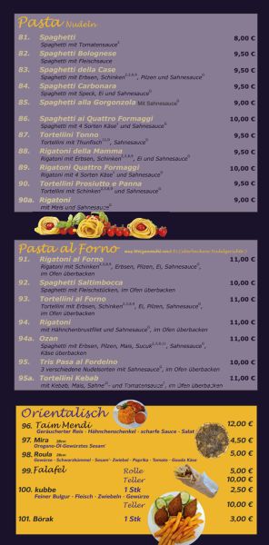 Dienstag: 11:00 - 14:00 Uhr und 17:00 - 23:00 Uhr